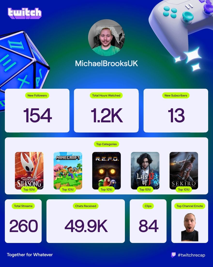 Another year means another Twitch recap, and I have been pleasantly blown away. In a world where we're constantly looking at the follower number, we often forget about the small things that also help build our community.