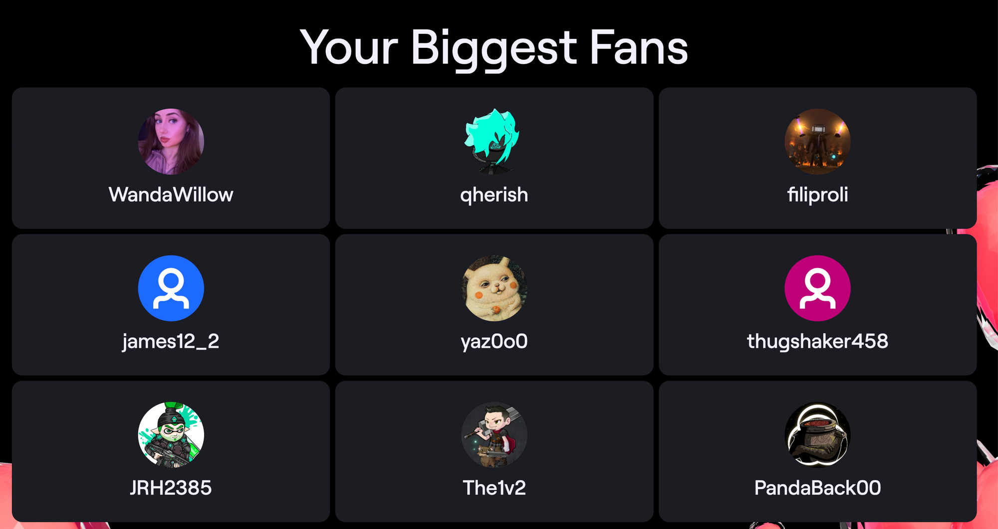 These are all the cool viewers who have spent time watching me game and yapping about random bs. Of course, there are many more who lurk, but seeing this put together is really cool.
