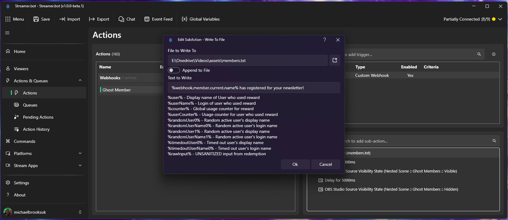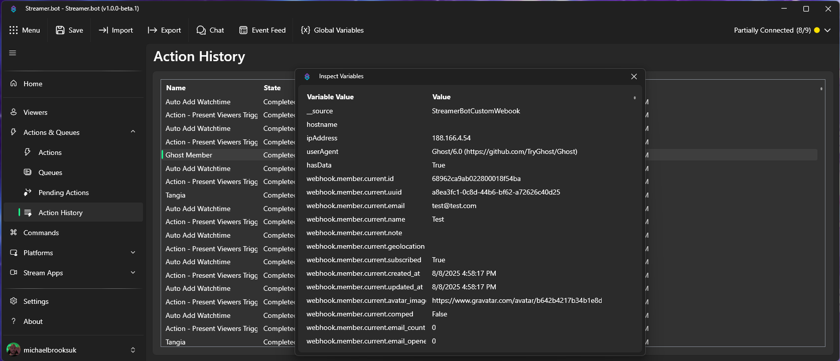 Streamerbot has just released its supported alpha (1.0) into public beta, and it's the perfect timing, as I just started playing with Webhooks. I wanted to create an alert for my stream that would show when someone became a member on my Ghost site, allowing me to make a call-out and offer a public thank you.