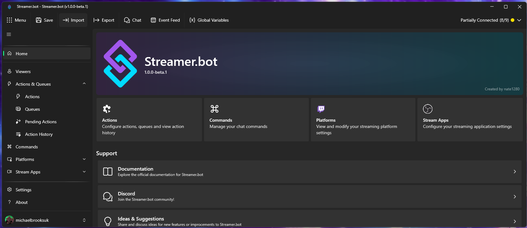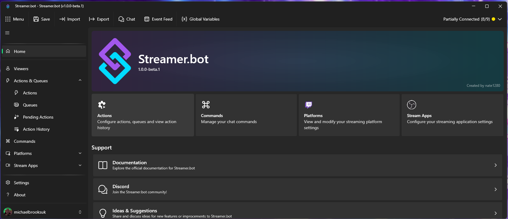 If you have a green success status, then that means everything has been set up correctly, and you can create Actions within the Streamerbot application and create some exciting alerts.