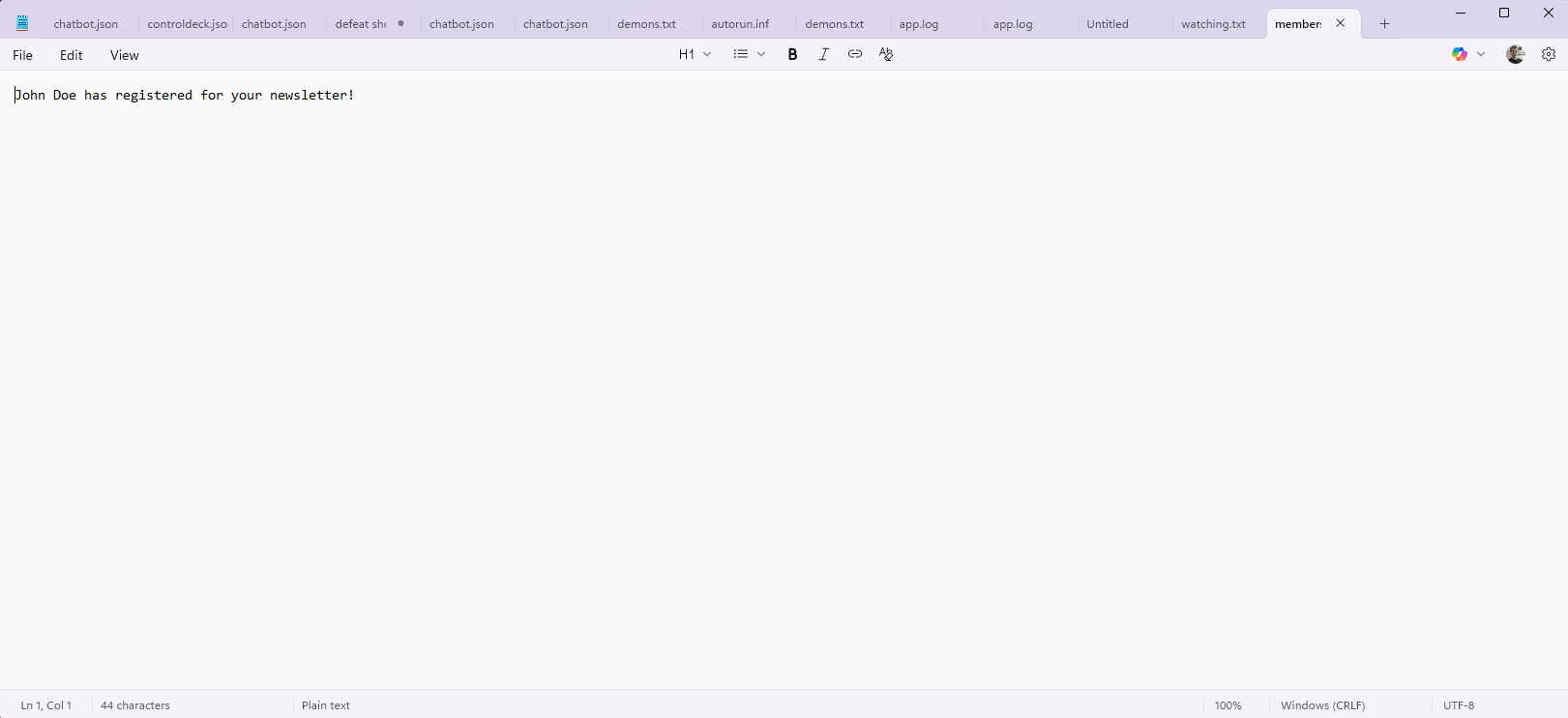 You can simply open your notepad file, and it should display the name you chose and the one they registered for your newsletter.